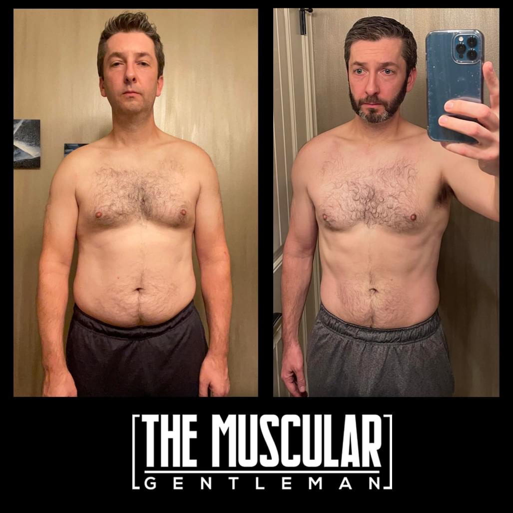 The men in The Muscular Gentleman program workout 3-5 times per week for 45 minutes - 1 hour.